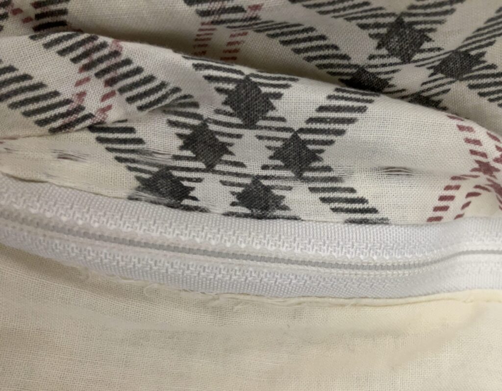 かけ布団のど真ん中に、真っ直ぐな裂け目ができていました。