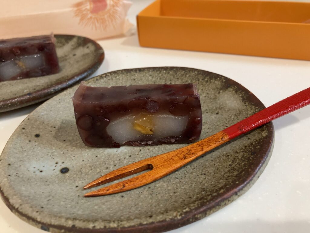今年見つけたのは、叶匠寿庵の「あも」に栗が入った季節限定・栗あもでした。
