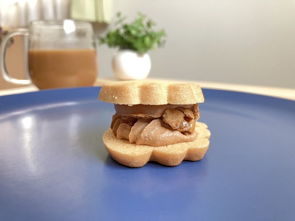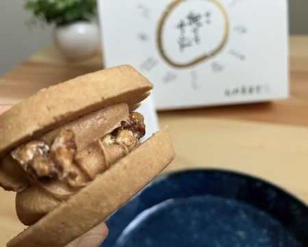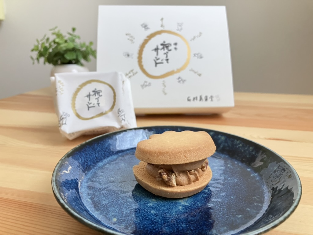 お祝いの「博多手一本」に由来した、手のひら型のクッキーサンドです。